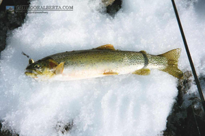 I find this lake interesting because it’s the only one with Dolly Varden in Alberta. It took me several hours to catch one. They seemed to be in the south west corner of the lake on the day I visited.