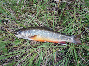 The water here is clear and mostly shallow off the shore with the exception of the scree slop on the north side. Brook Trout and Cutthroat Trout live here and they naturally reproduce. The Brook Trout seem to be dominating as I only saw juvenile cutthroat. The Brookie above is 9" but I did see some that looked larger.