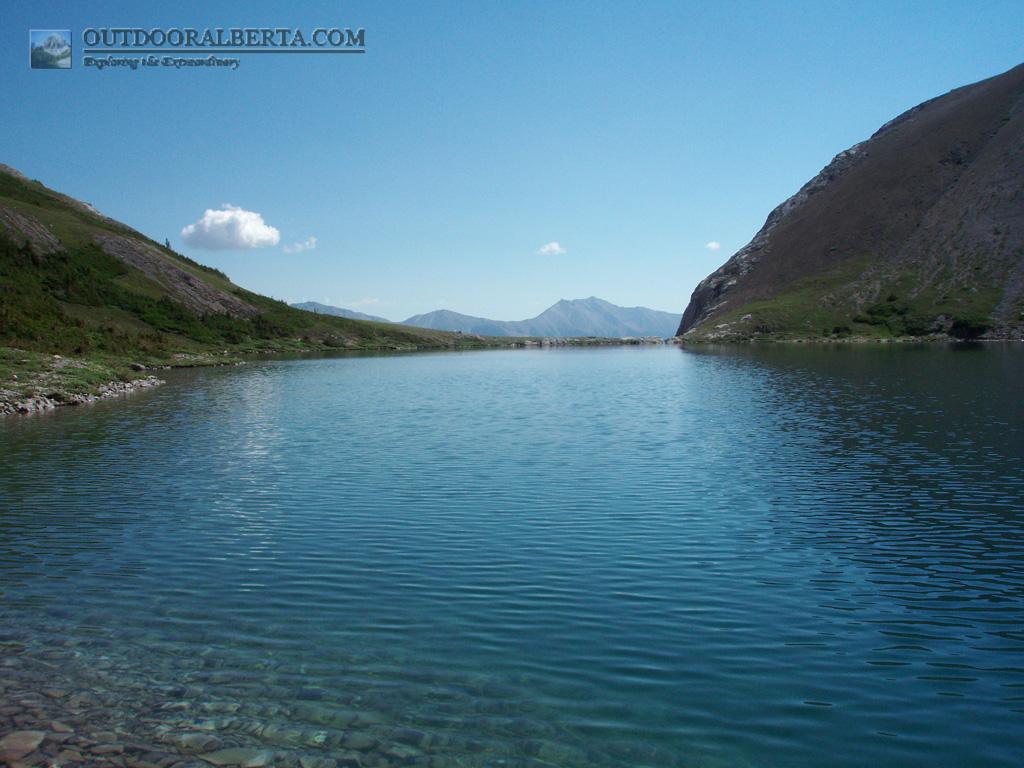 Lake of the Horns is a blue in color and the water is clear. You have to cross the Highwood River which can be high earlier in the year. As usual with the lakes in this area the trail follows a steep headwall up to the lake. This headwall trail probably gains the most elevation in the shortest distance in comparison with Carnarvon or Loomis.