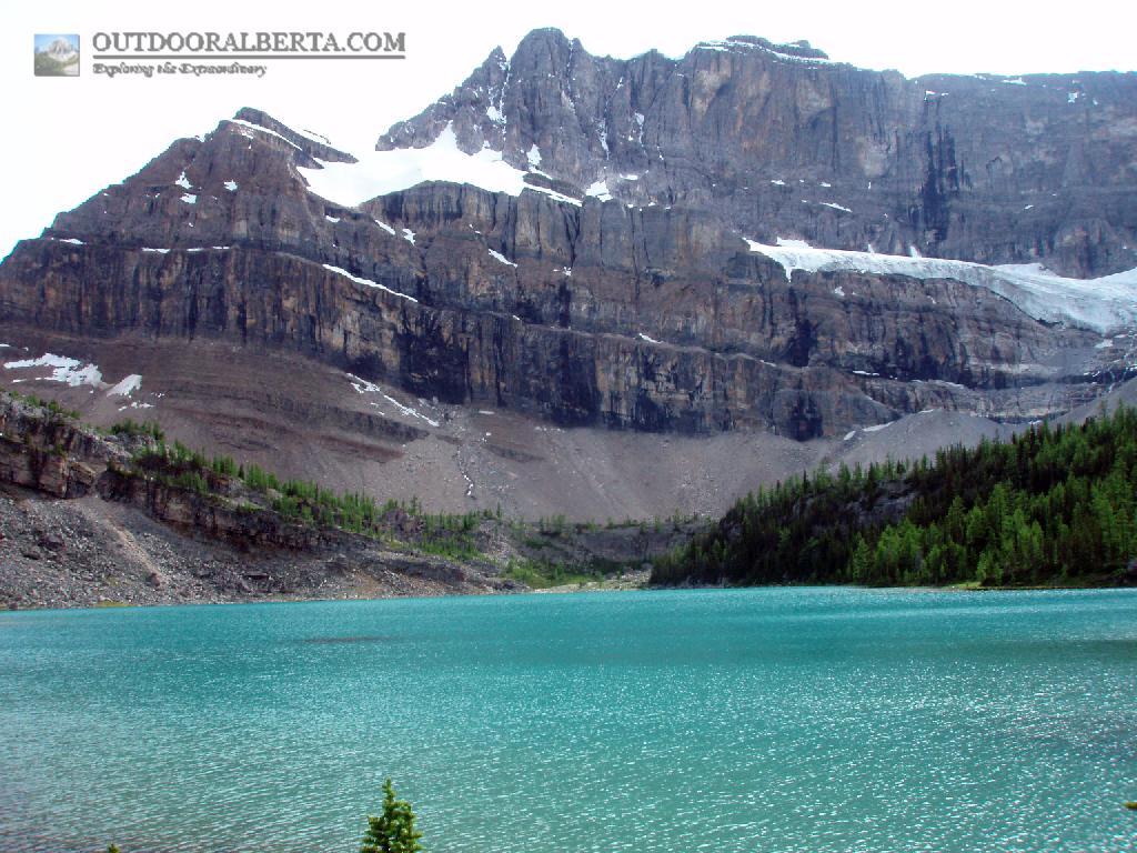 I'm not too sure about Myosotis Lake, the lower of the Skoki Lakes. I didn't see any sign of fish and didn't catch any but didn't give it a long time either. Information on fishing this lake like many others in the backcountry is very limited, word of mouth or outdated which is one of the reasons I maintain this site. Skoki Lakes are silted giving them the picturesque color. They are accessed via the unofficial but well traveled Packer's Pass trail. Upper Skoki Lake or Zigadenus Lake isn't supposed to have any fish. For more information on this area of Banff National Park see the Skoki Area.