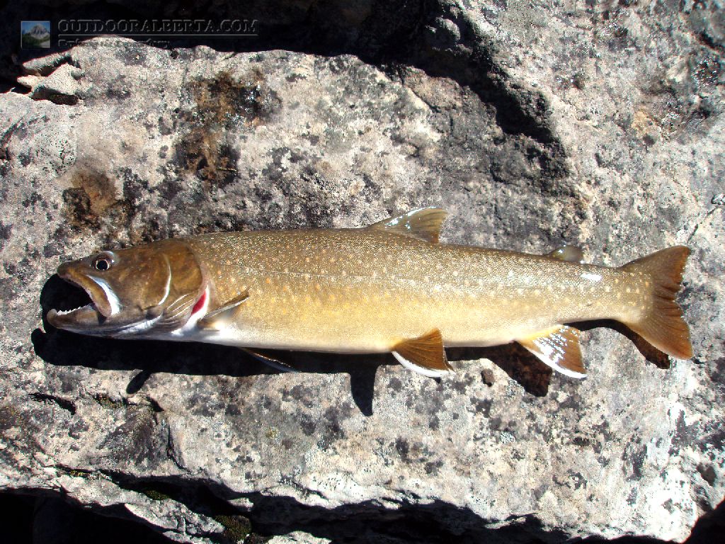The Bull Trout in Mystic Lake were just as long as the Cutthroat reaching lengths of 17" with most being in the 15 to16" size. These fish I was catching in the shallower closer to shore waters near the rocks. Please note it is illegal to keep Bull Trout within Alberta. The Bull Trout here seem to behave better out of the water than other trout and take off as soon as they get back in which makes their release easy.