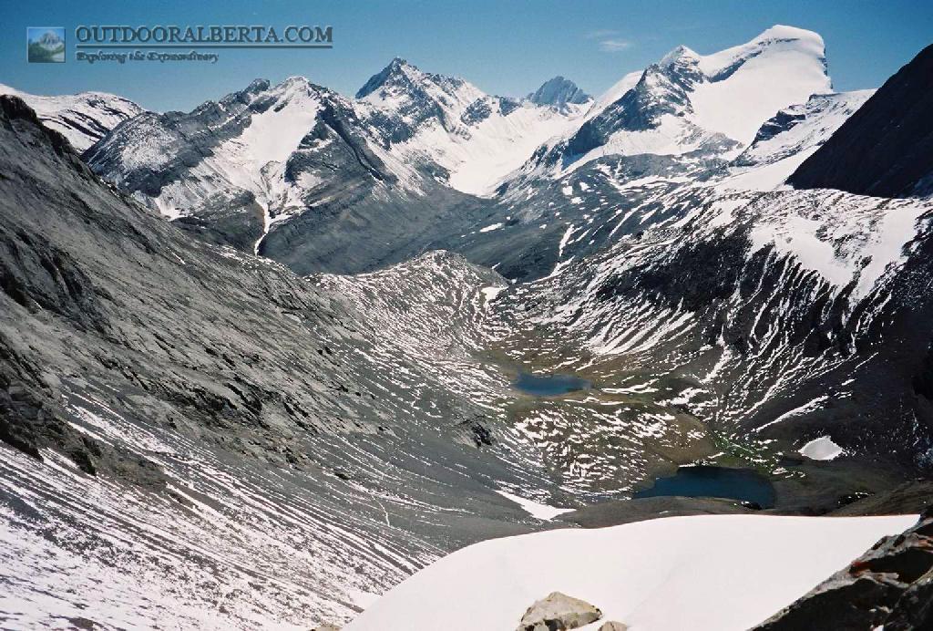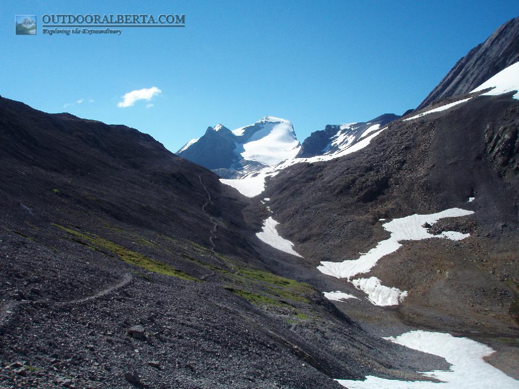 Aster Lake. The next day you head around the lake and up and around towards the ridge. These pics are from August 2005 and 2008 and as you can see snow lingers even then.