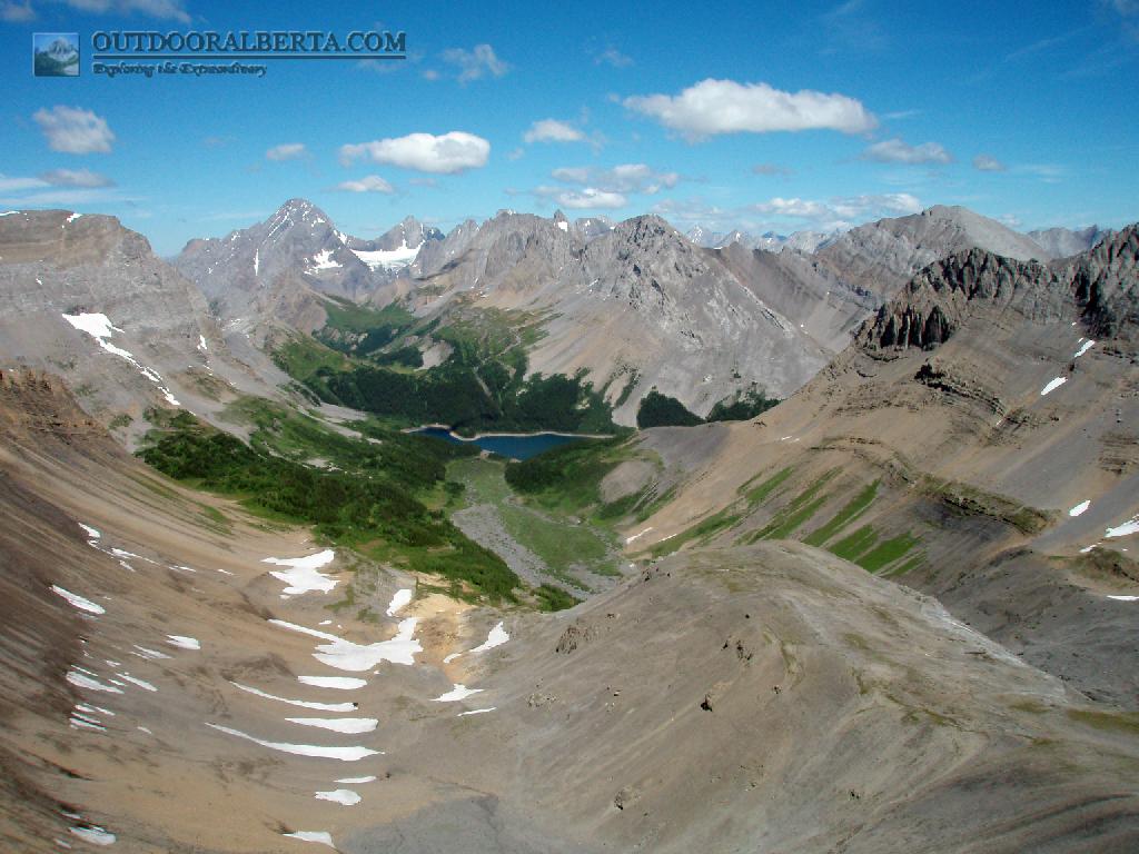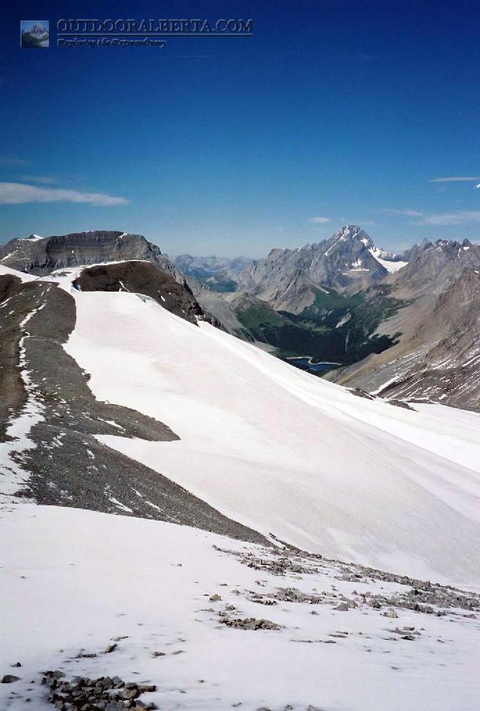 This trip was my first backcountry trip and I have done it again since its one of the most spectacular. The trail begins on the Upper Kananaskis Lake trail. You cut off and head around Hidden lake (hopefully the water level is low enough) then up a steep hill and scree towards Fossil Falls (left). You stay your first night at the backcountry campground just below