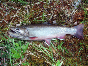 The only species I caught in this lake were Brook Trout but apparently rainbows and cuts exist here. It took me a while to find a good spot to fish. Access around most of the lake shore is overgrown. When I did find a good spot fishing was active. The Brooks I caught in the lake were up to 15".