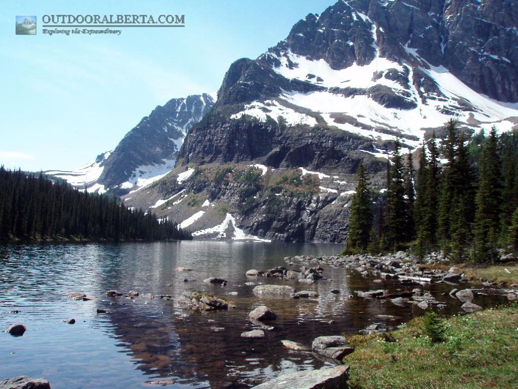 Twin Lakes are located of hi-way 93 or 1 depending on your choice of access. The smaller of the lakes is the upper one with a campground beside it. The lower lake is larger and about 800 meters away. The shores of both these lakes are shallow.